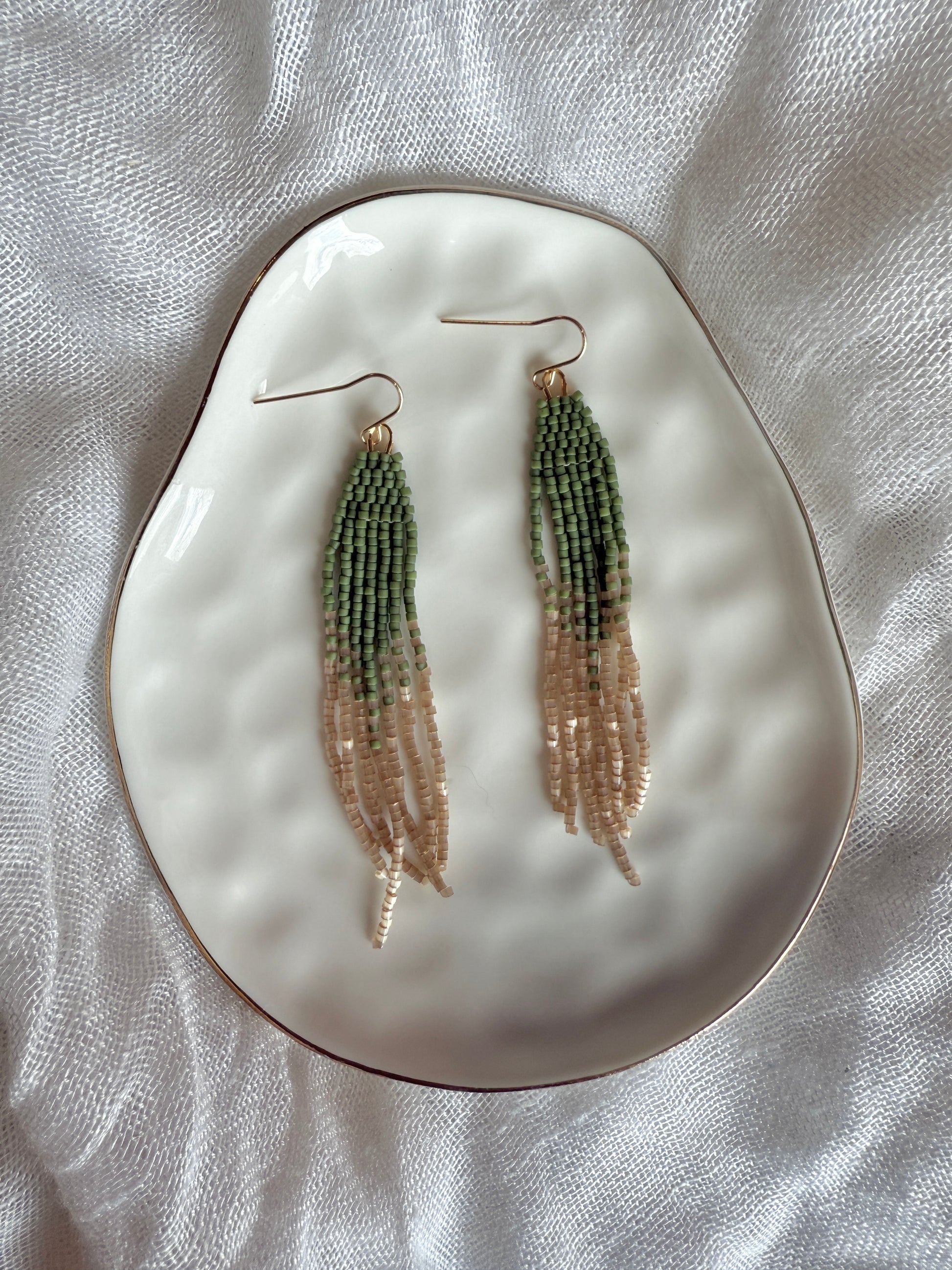 ~3.25" from top of thread guard to bottom fringe + finished with gold-filled ear wires