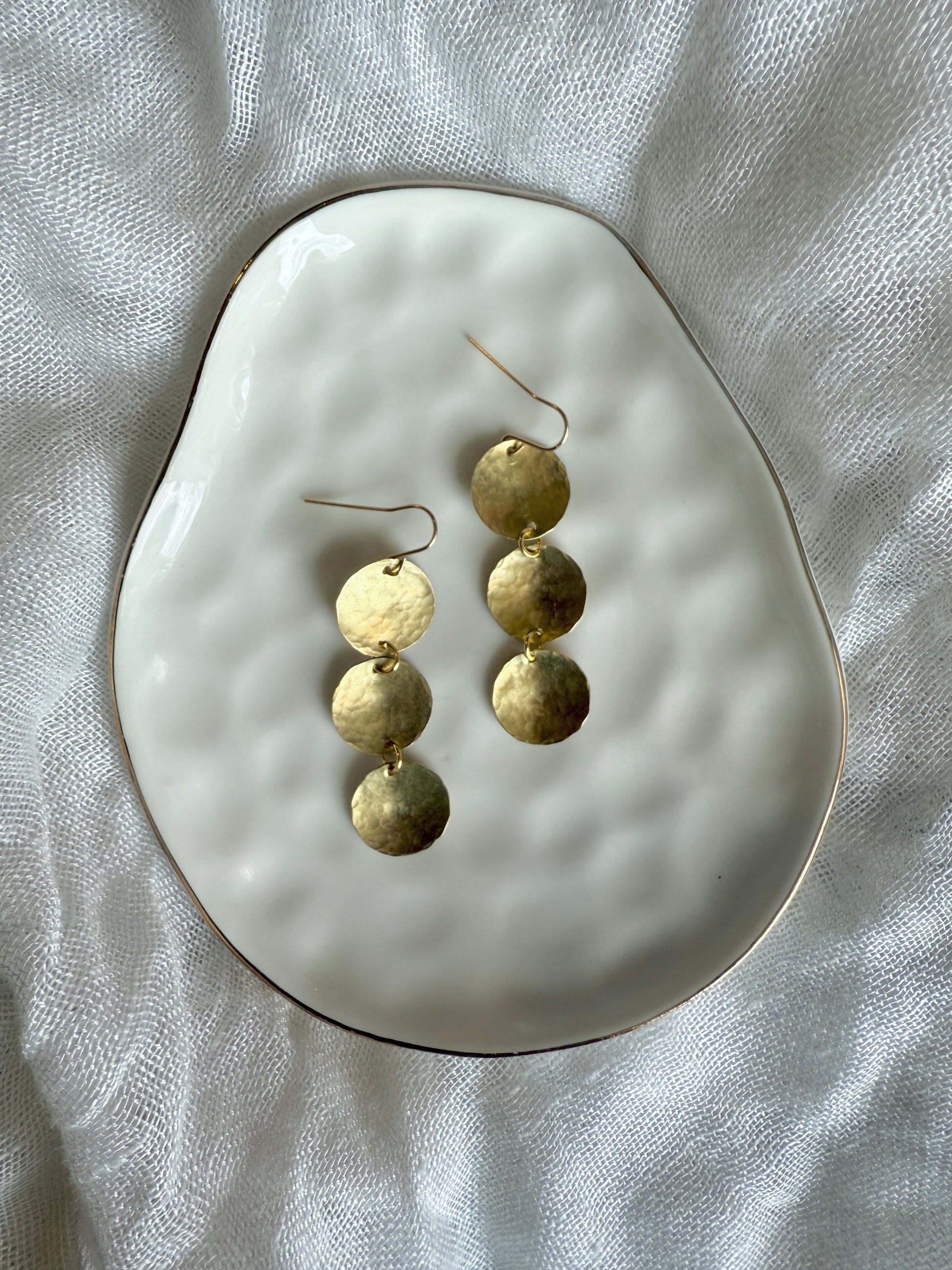 3 16mm hammered brass discs + finished with gold-filled ear wires
