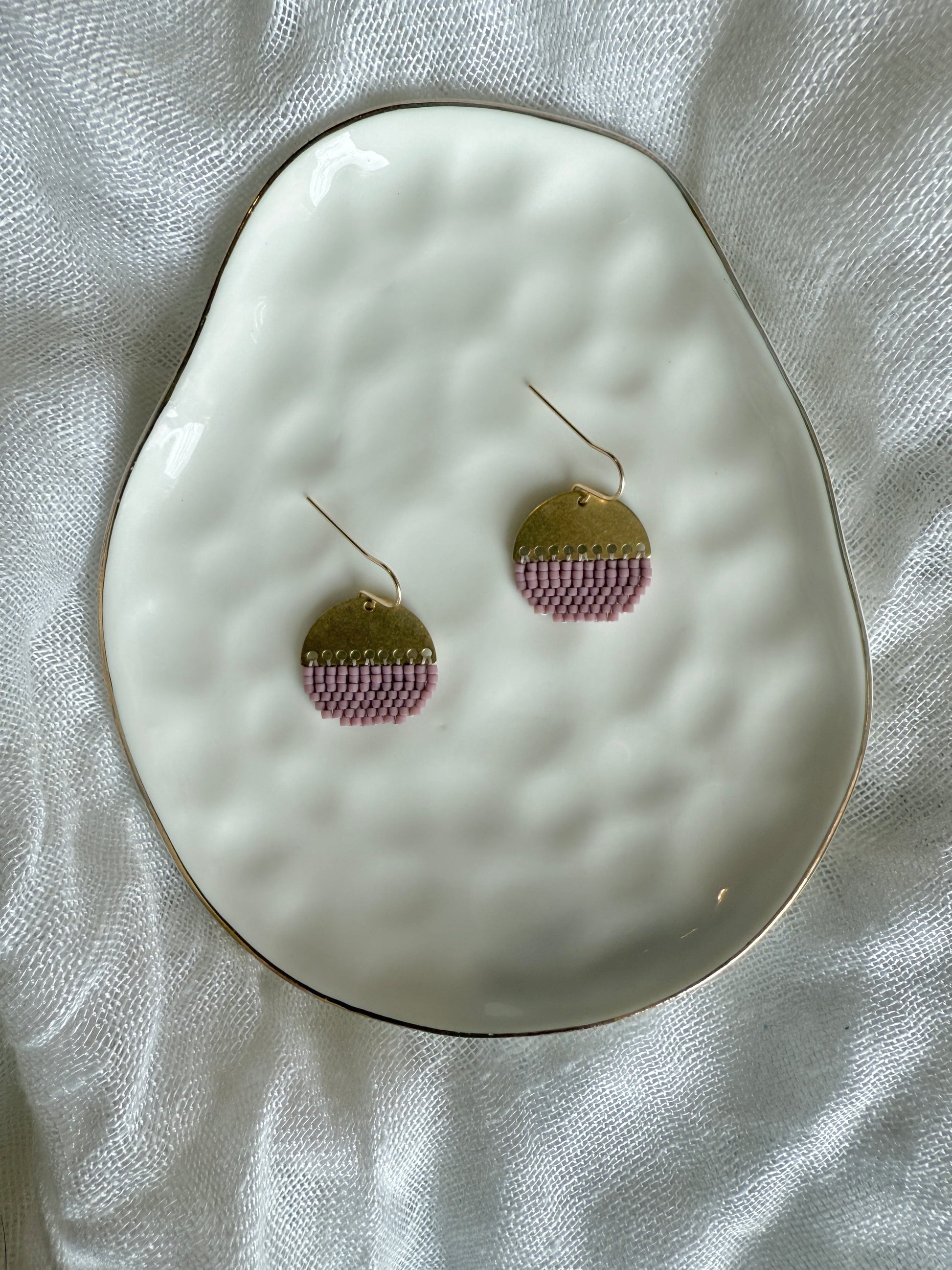 Light, modern, & effortlessly eye-catching. The Horizon Drops feature a smooth half circle design paired with delicate handwoven beadwork, creating an easy blend of shape and color