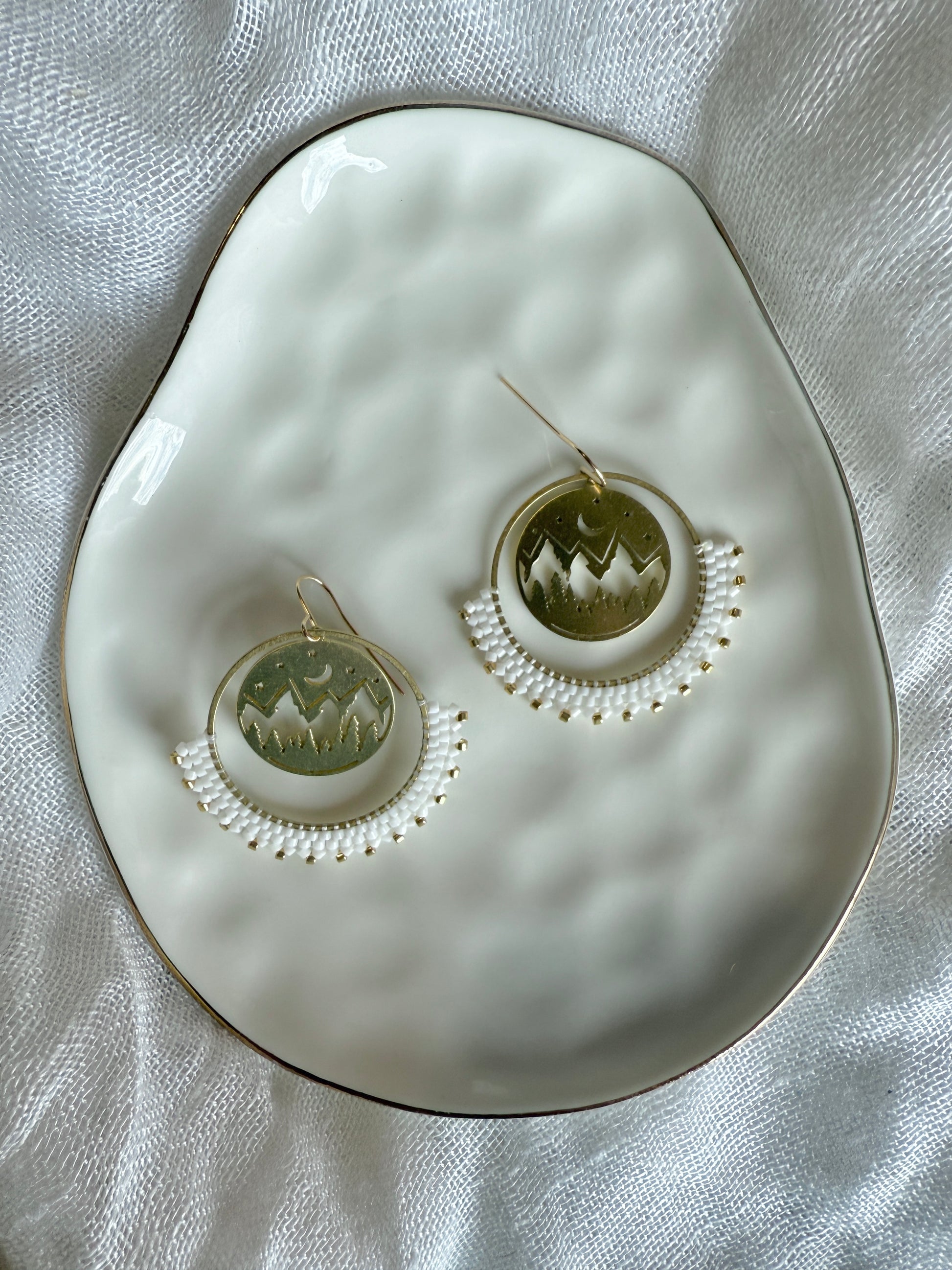 Beaded with a harmonious blend of base colors + gold accents, these earrings are a tribute to the majestic landscapes that captivate us.
