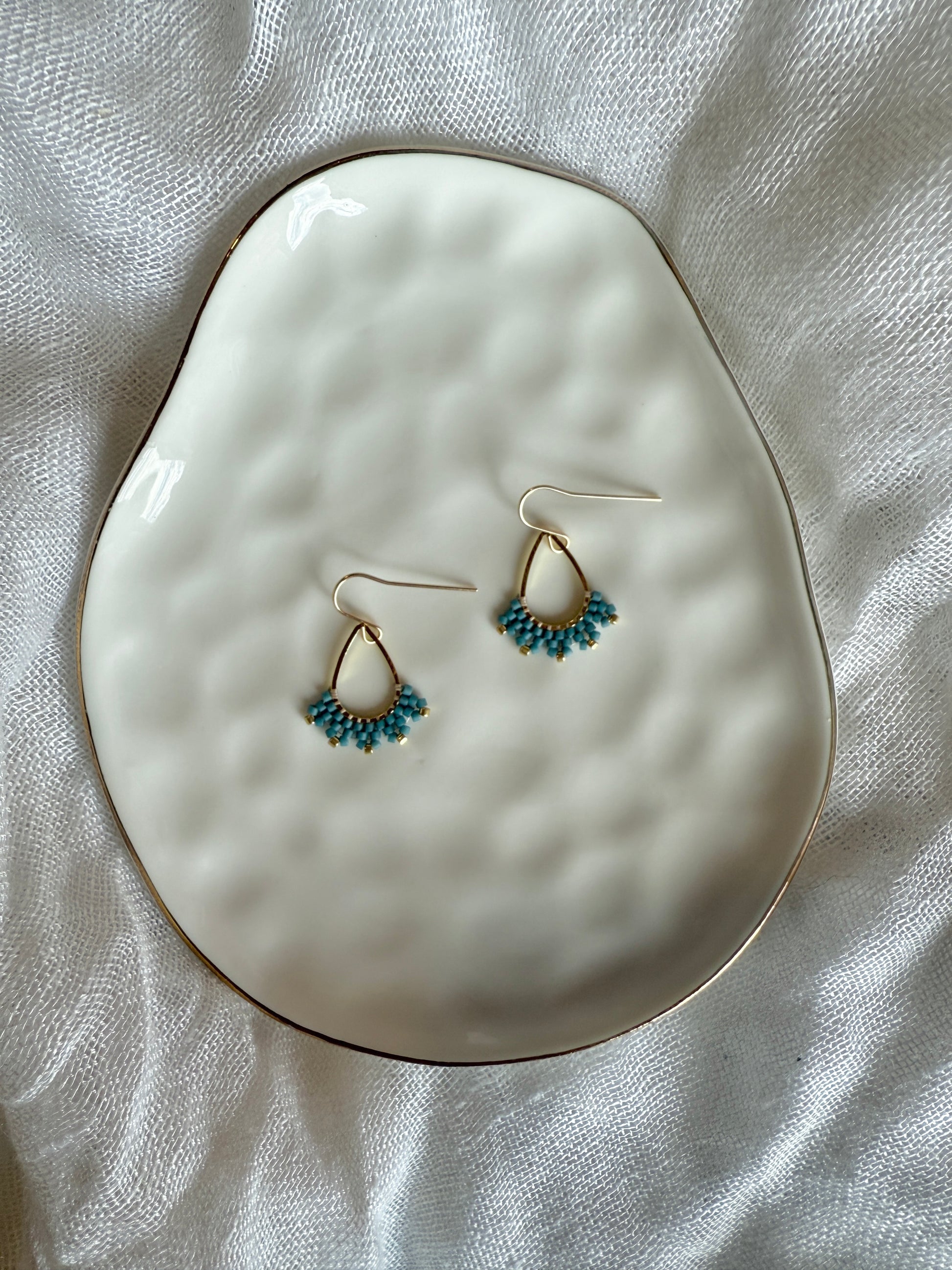 The OG Teardrop earrings bring a timeless silhouette to life with handwoven beadwork in a classic teardrop frame. Each pair features intricate rows of Japanese Miyuki Delica seed beads, stitched into a delicate pattern