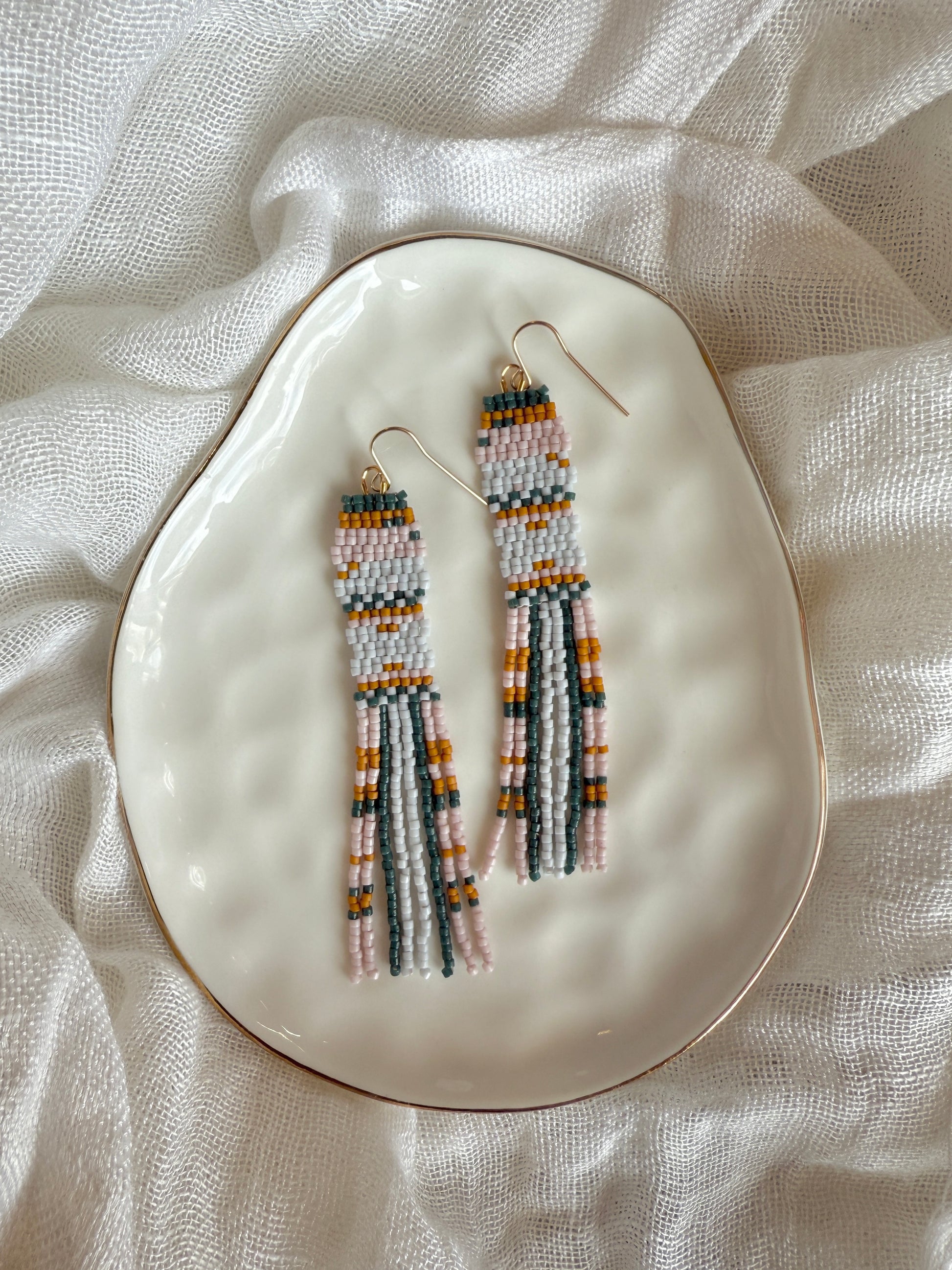 Handwoven with premium glass Miyuki Delica seed beads, these earrings feature long, flowing fringe that moves beautifully with every step. They're the perfect statement while remaining lightweight