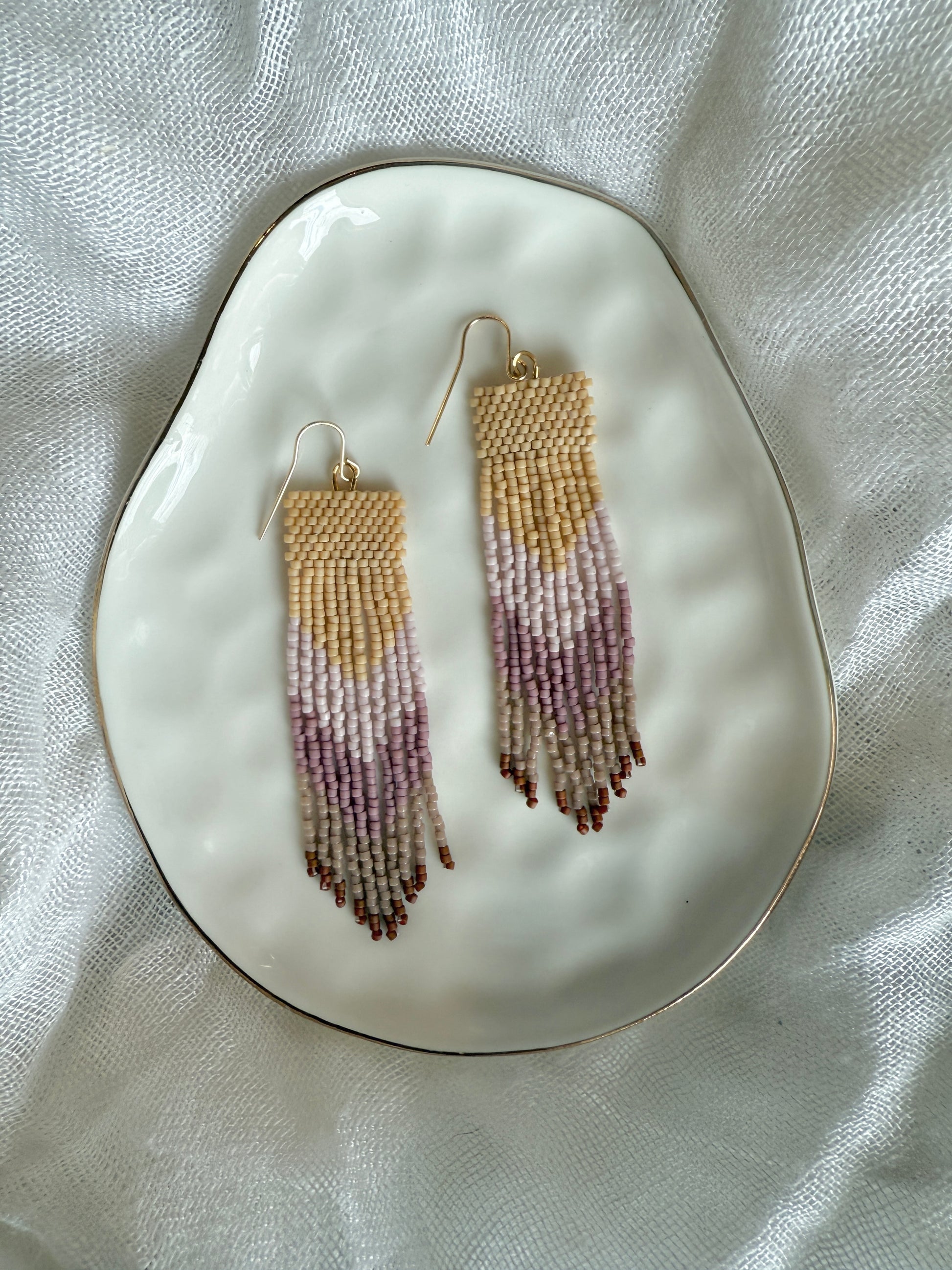 Terra Ombre earrings showcase premium seed beads in a stunning gradient of warm, earthy tones that transition seamlessly from light to deep hues